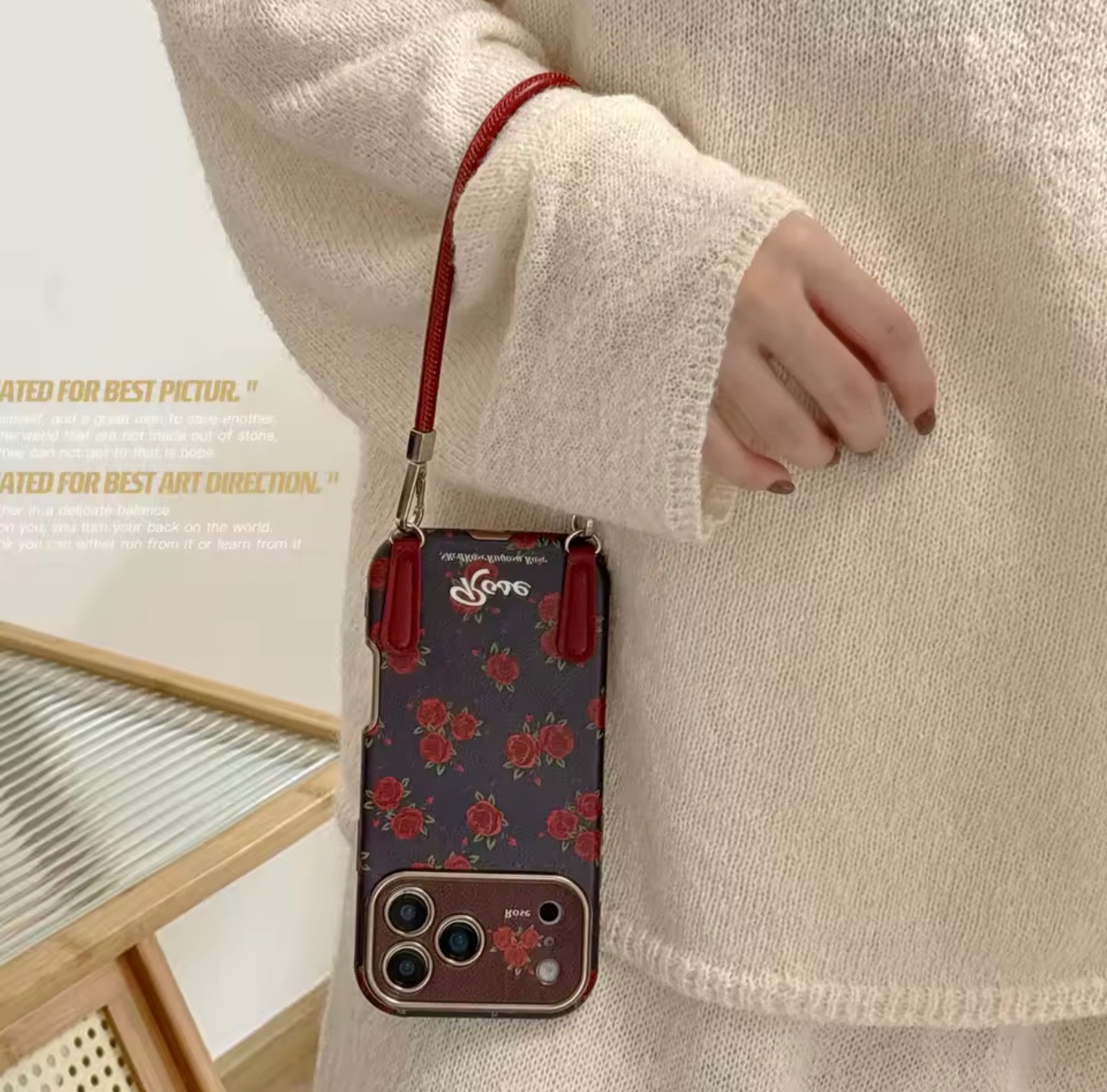 قاب آیفون midnight rose همراه با بند