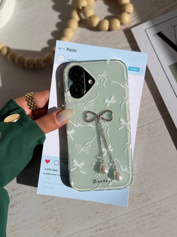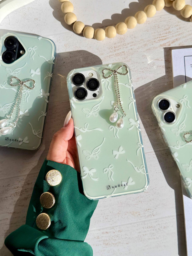 قاب آیفونGreen bow همراه با پاپیون نگیندار چسبی