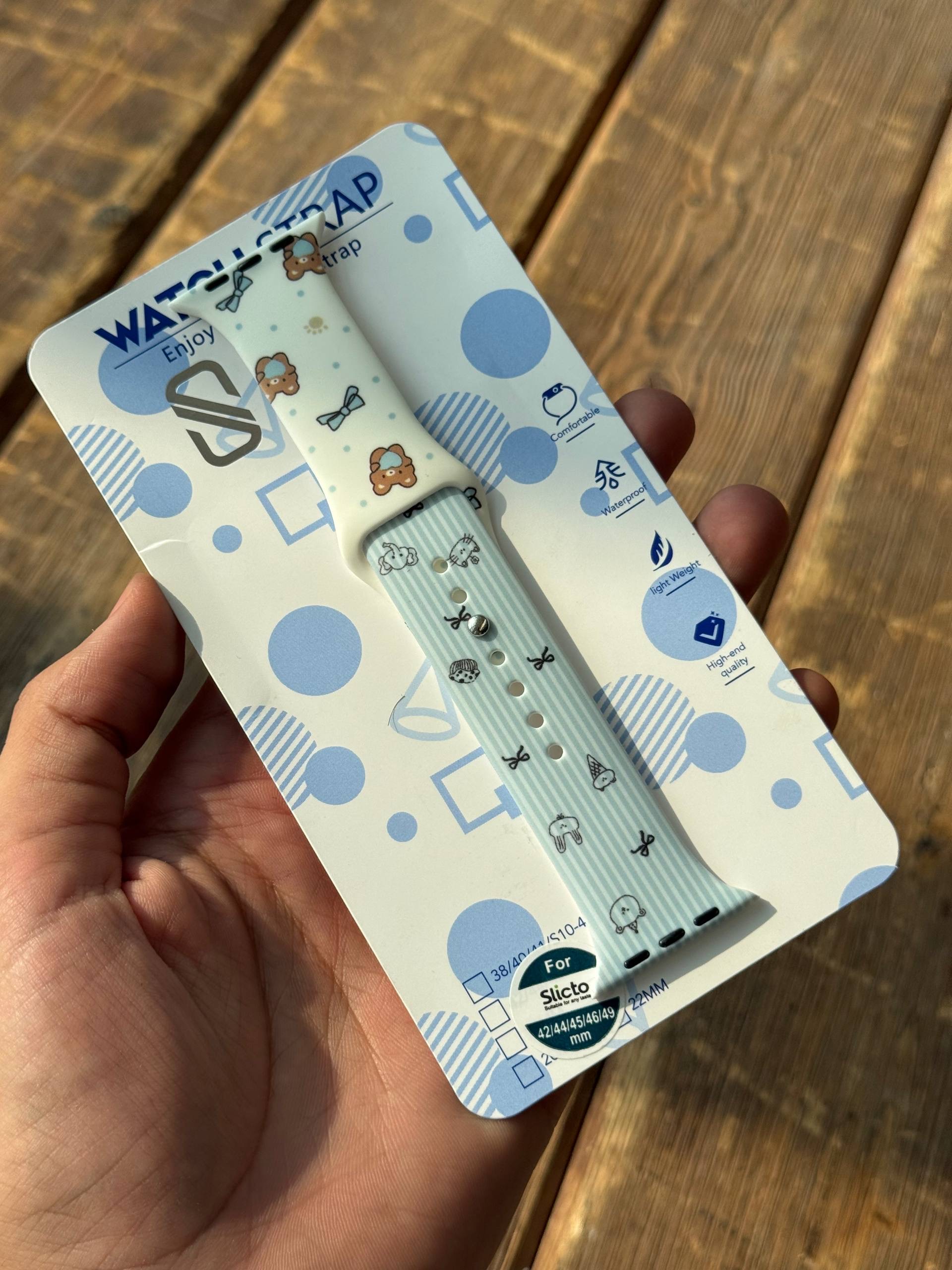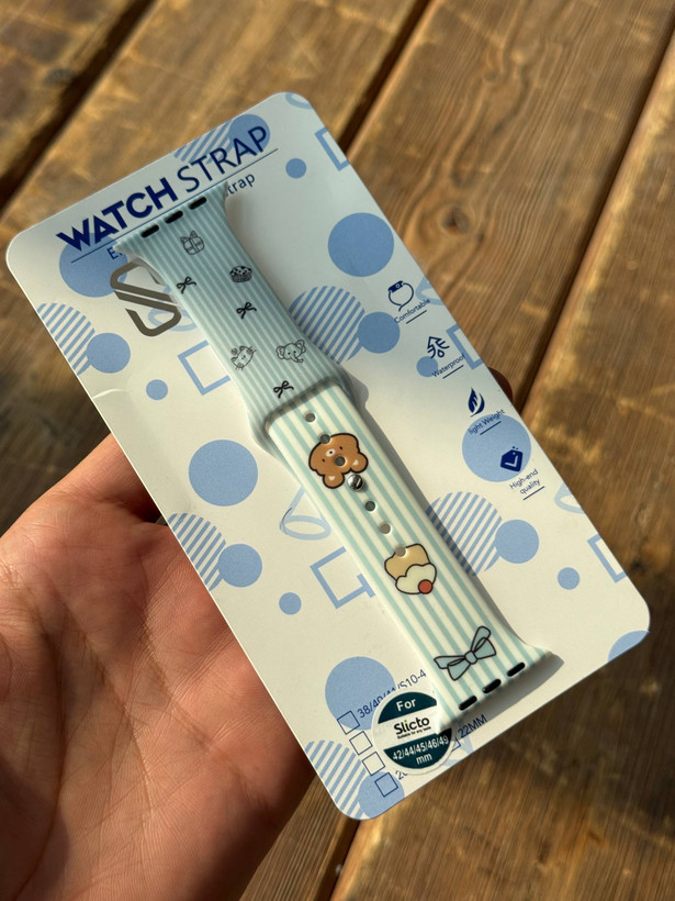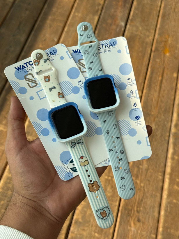 بند اپل واچ سیلیکونی طرحدار(تدی بلو/پت لاین)